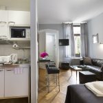 - Kuchnia: W pełni umeblowana i wyposażona. Znajdują się w niej wszystkie potrzebne sprzęty : kuchenka mikrofalowa, płyta elektryczna, lodówka, toster, ekspres do kawy.