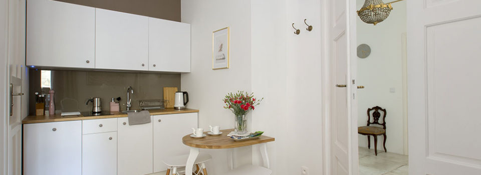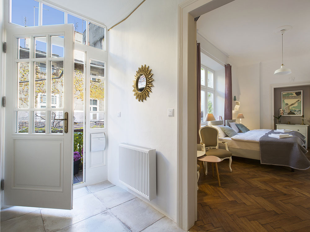 The apartment number 11 is an elegant 26m² studio flat perfect for 1-2 people. It is situated on the first floor in the courtyard of the antique tenement in Golembia Street, only 50 metres from the Main Market Square. It has a bedroom adjacent to a living room, a kitchenette and a comfortable bathroom.