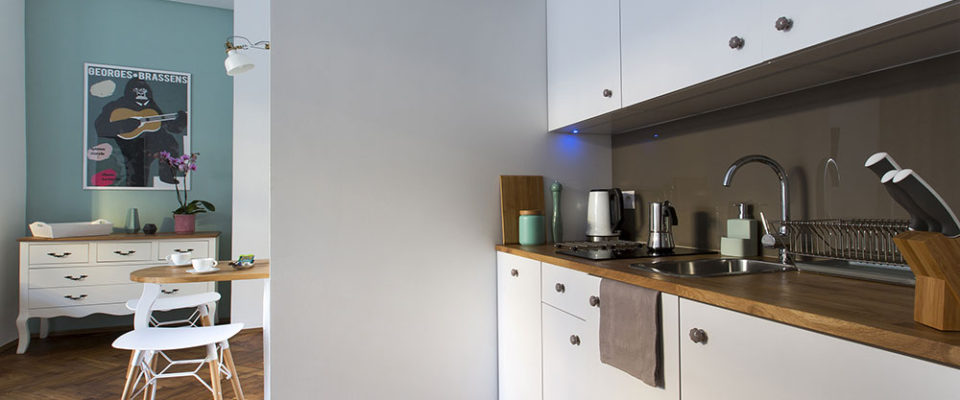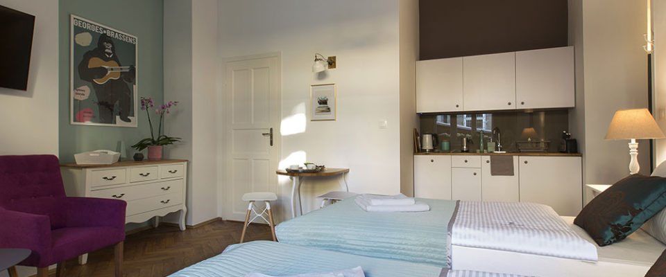 The apartment number 12 is an elegant 26m² studio flat perfect for 1-2 people. It is situated on the first floor in the courtyard of the antique tenement in Golembia Street, only 50 metres from the Main Market Square. It has a bedroom adjacent to a living room, a kitchenette and a comfortable bathroom.