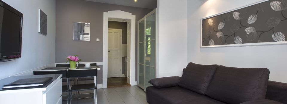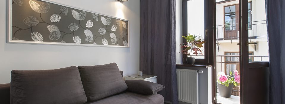 The apartment number 9B is a newly furnished, renovated, comfortable apartment for 2-4 people. It is situated on the third high floor of an art nouveau tenement in the old city centre. It has a cozy bedroom, an elegant living room, a kitchenette and a bathroom.