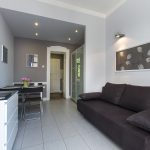 - A living room: in the living room there is a big sofa bed, a dining table with chairs, a wardrobe and a modern flat TV set.
