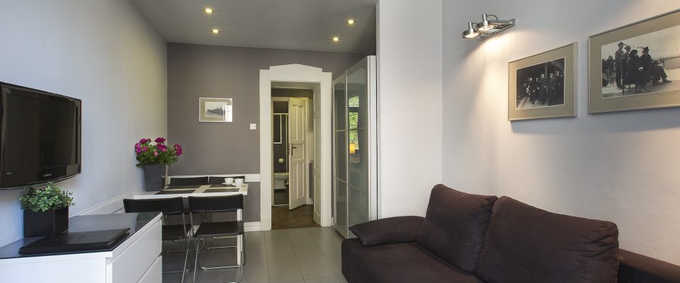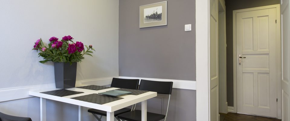 The apartment number 9B is a newly furnished, renovated, comfortable apartment for 2-4 people. It is situated on the second high floor of an art nouveau tenement in the old city centre. It has a cozy bedroom, an elegant living room, a kitchenette and a bathroom.