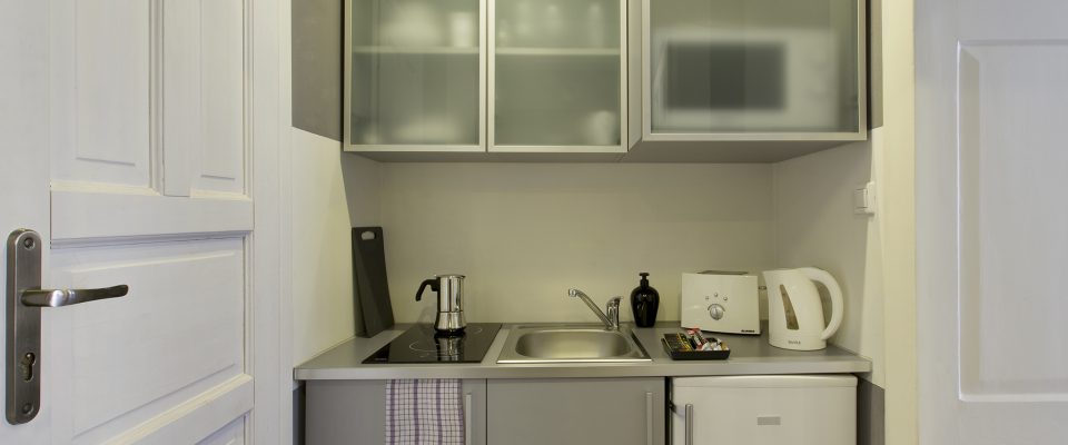 - A kitchen: fully equipped and furnished. You will find all the necessary devices: a microwave, an electric cooktop, a fridge, a toaster and a coffeemaker.