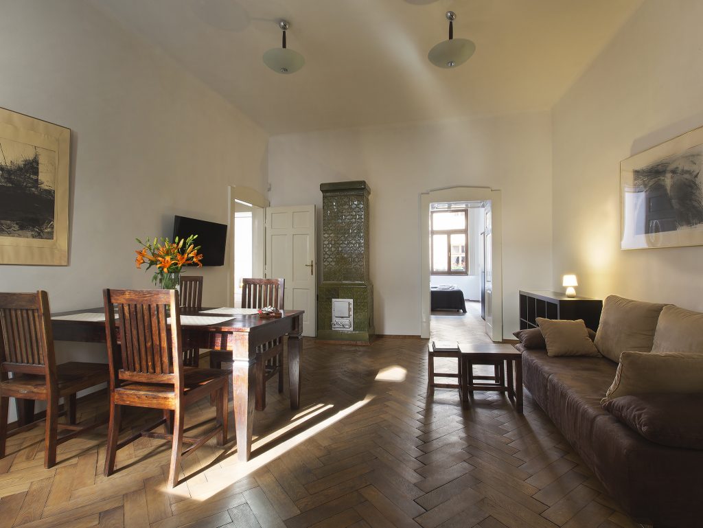 The apartment number 5B (extended) is a two bedroom flat perfect for 4 people. It is situated on the third floor of the antique tenement in the old city centre, only 50 metres from the Main Market Square. It is fully furnished with an equipped kitchen and a comfortable bathroom.
