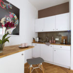 Apartament numer 14 to elegancki lokal typu studio o powierzchni 26m² przeznaczony dla 1-2 osób. Mieści się na pierwszym piętrze, w podwórku zabytkowej kamienicy na ulicy Gołębiej zaledwie 50 m od Rynku Głównego. Składa się z sypialni połączonej z miejscem do odpoczynku, wyposażonego aneksu kuchennego oraz komfortowej łazienki.