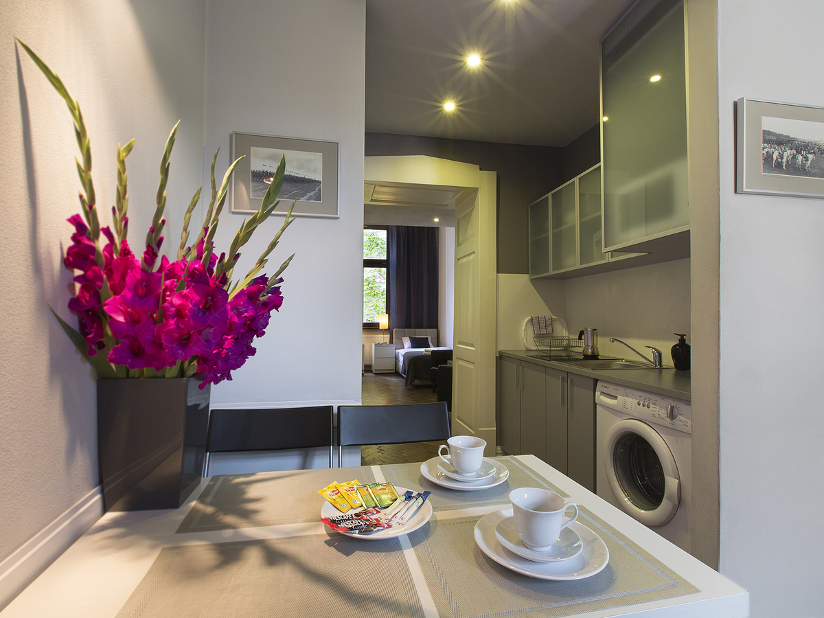 Apartament 5A to elegancki lokal typu studio przeznaczony dla 1-2 osób. Mieści się on na trzecim piętrze zabytkowej kamienicy na terenie Starego Miasta, zaledwie 50 metrów od Rynku Głównego. W pełni umeblowany z wyposażoną kuchnią i wygodną łazienką.