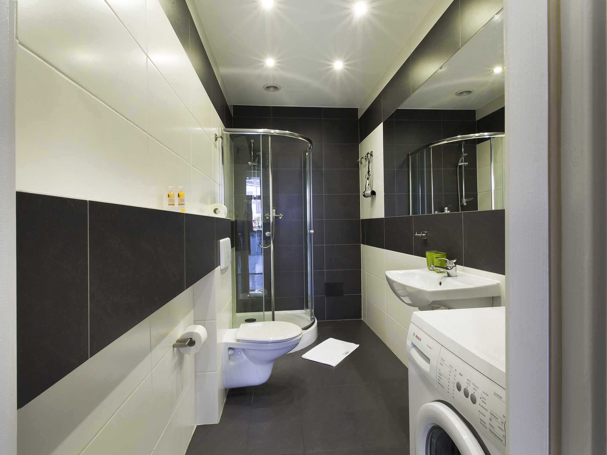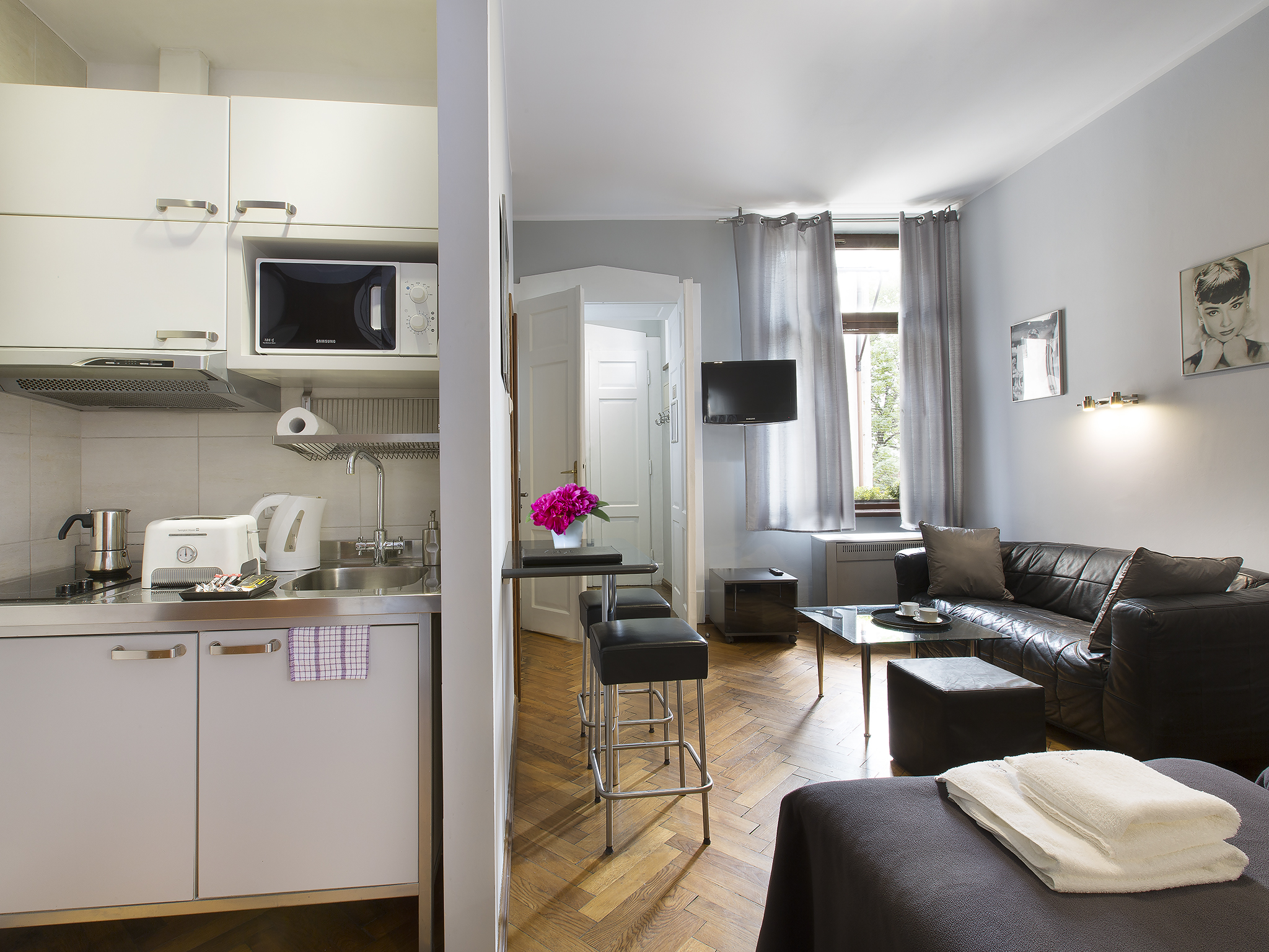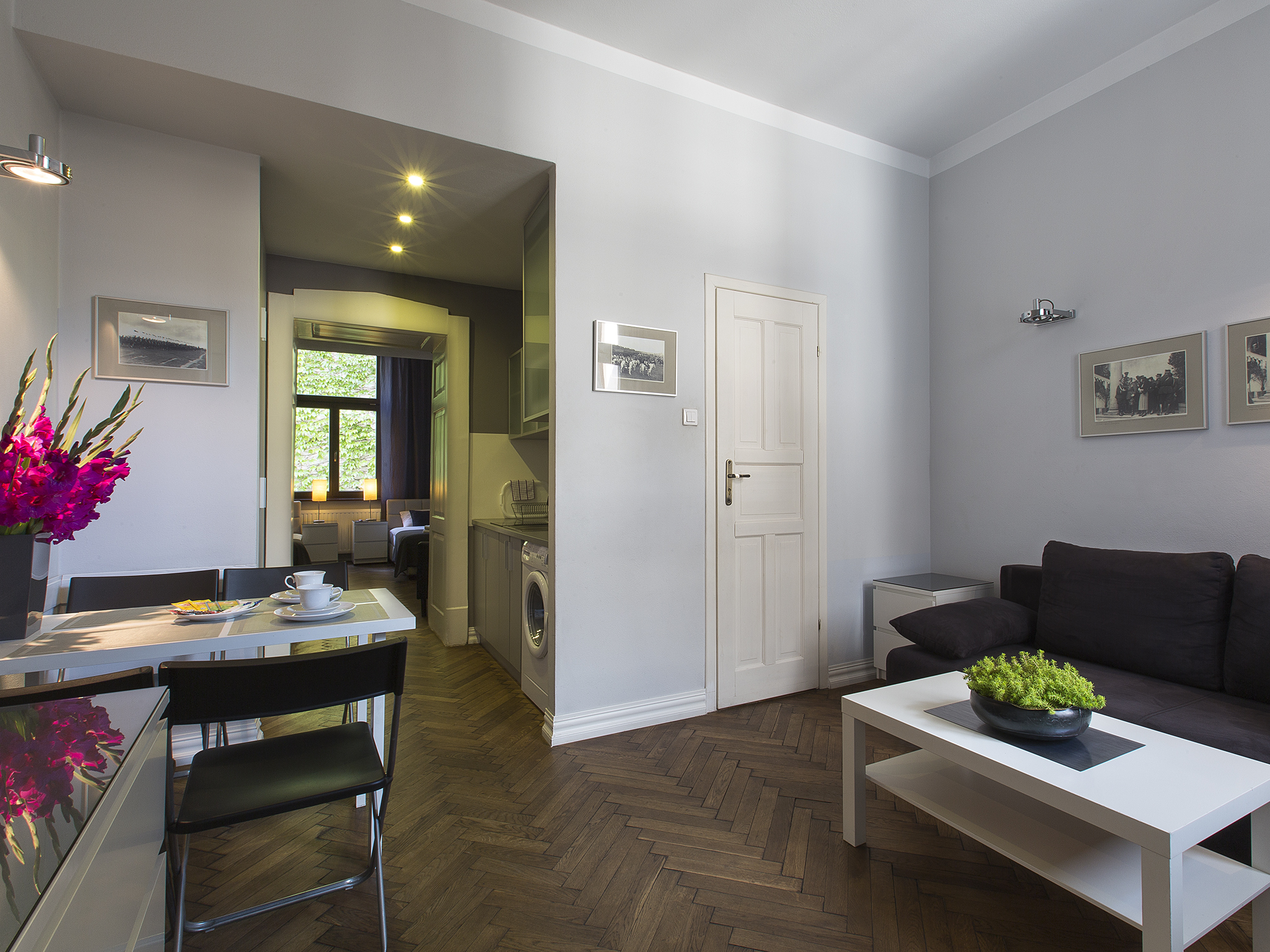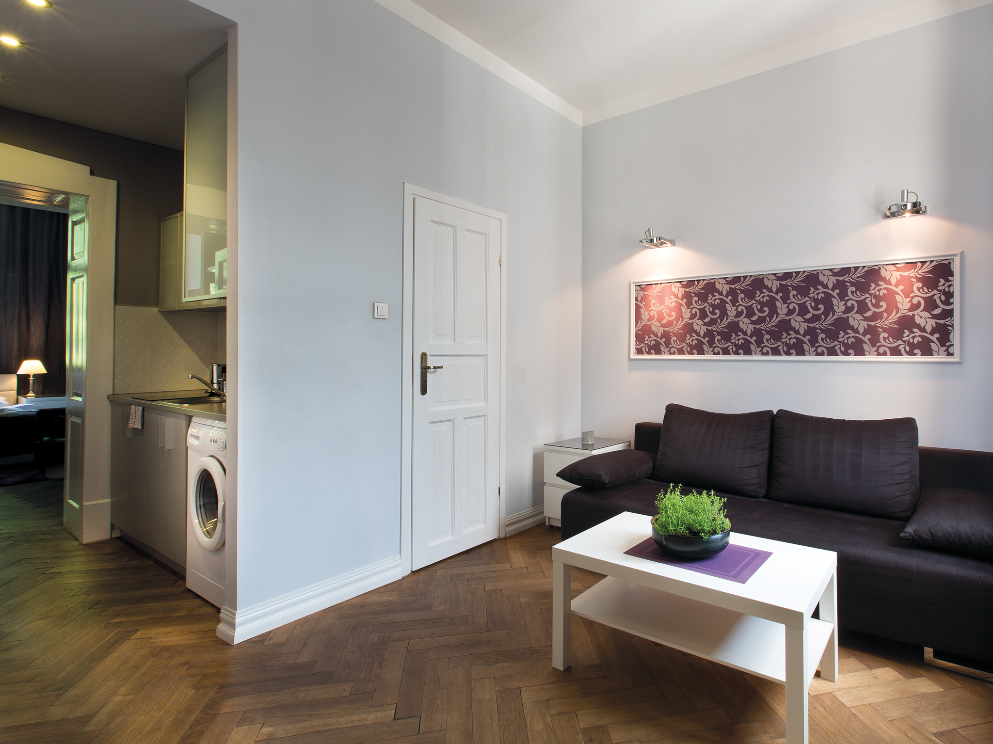 Składa się z dwóch sypialni, dużego salonu, kuchni, łazienki i przedpokoju.