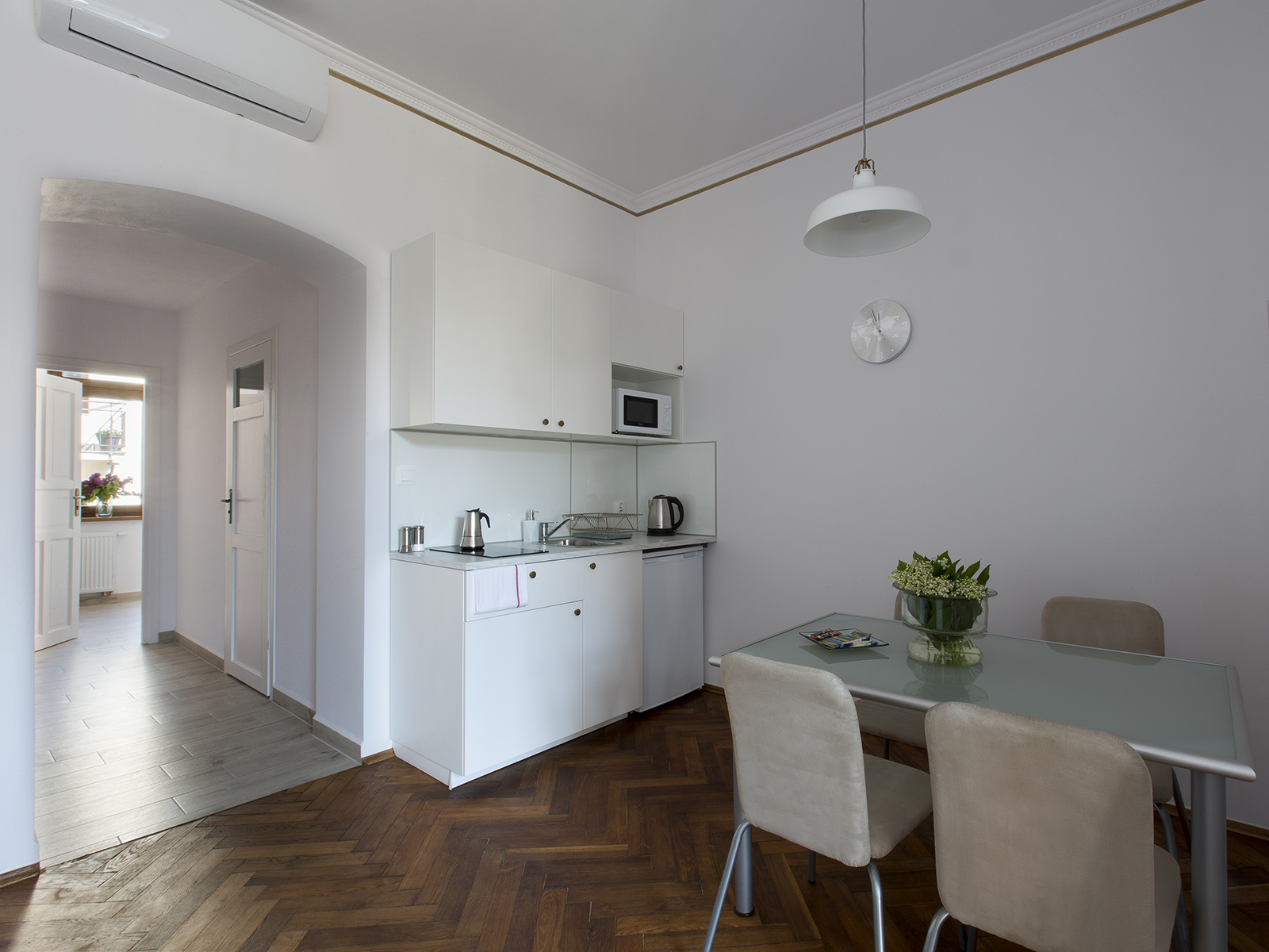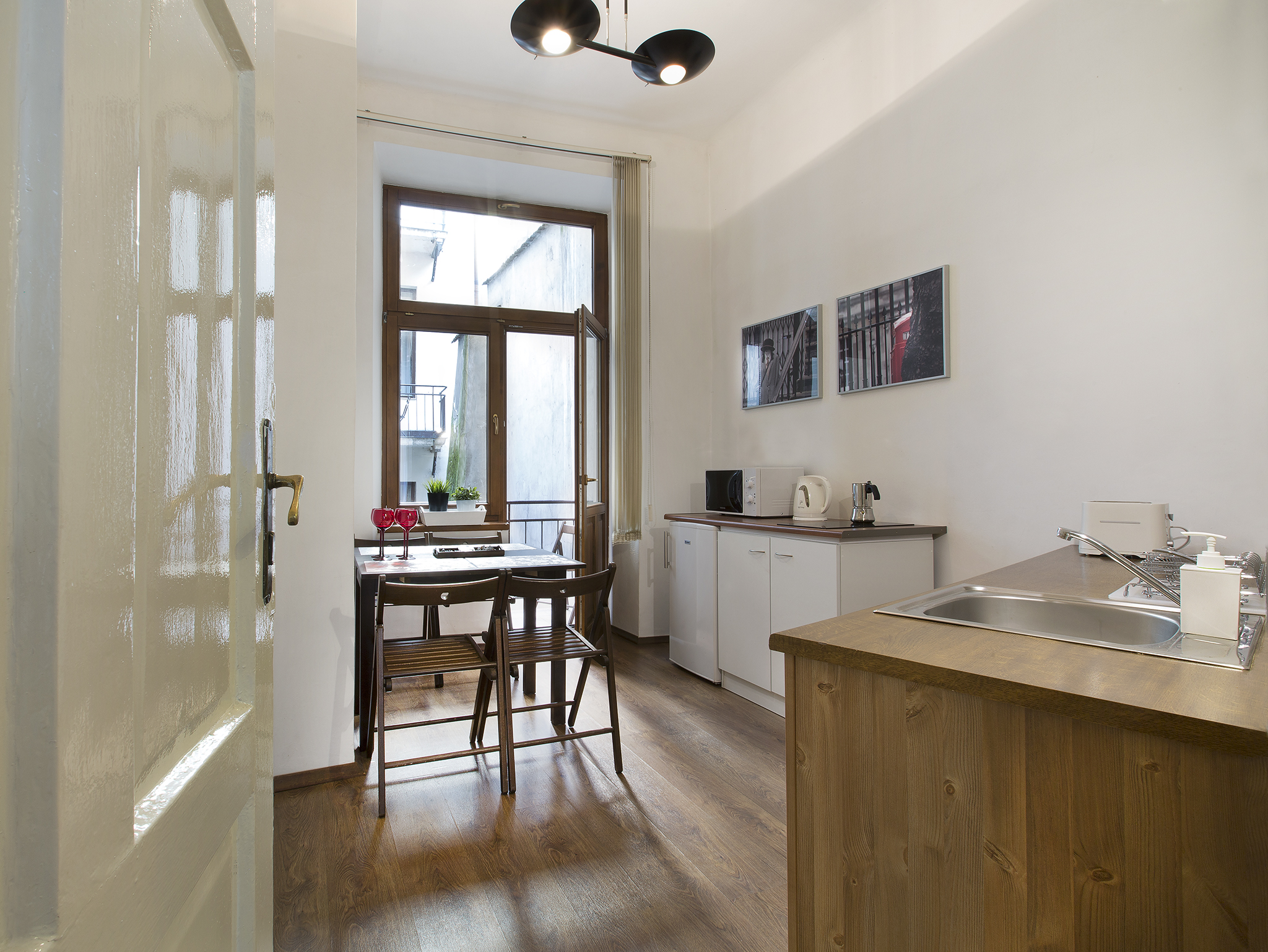 Apartament typu studio dla 1-2 osób znajdujący się na trzecim piętrze w zabytkowej kamienicy na terenie Starego Miasta, zaledwie 50 metrów od Rynku Głównego. W pełni umeblowany z wyposażoną kuchnią i wygodną łazienką.